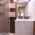 Alle badeværelser indeholder separat toilet og en bruser.